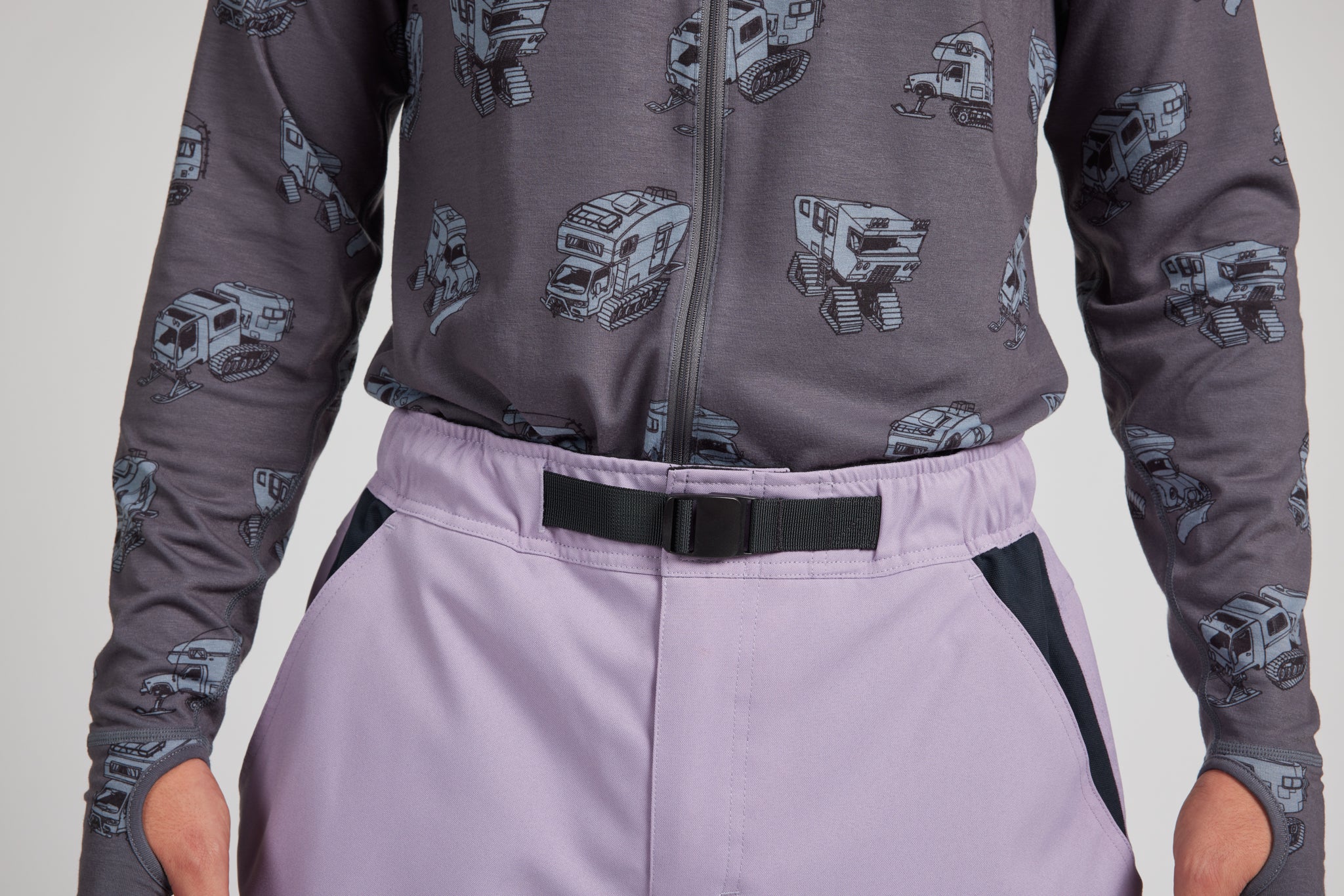 The very first outerwear pants that Airblaster designed, in around 2004, had elastic bottoms. We brought samples to the trade show. People said, “Ha-ha. … Seriously, though. ... They're going to have 'normal' bottoms, right?” And we were like, “Duh. Yes. Like, that elastic is just a joke, obviously.” and we changed them. But it wasn't a joke. We were crying. But now we laugh. Teehee. Mid Baggy fit bangs harder, without going overboard to full genie pant.