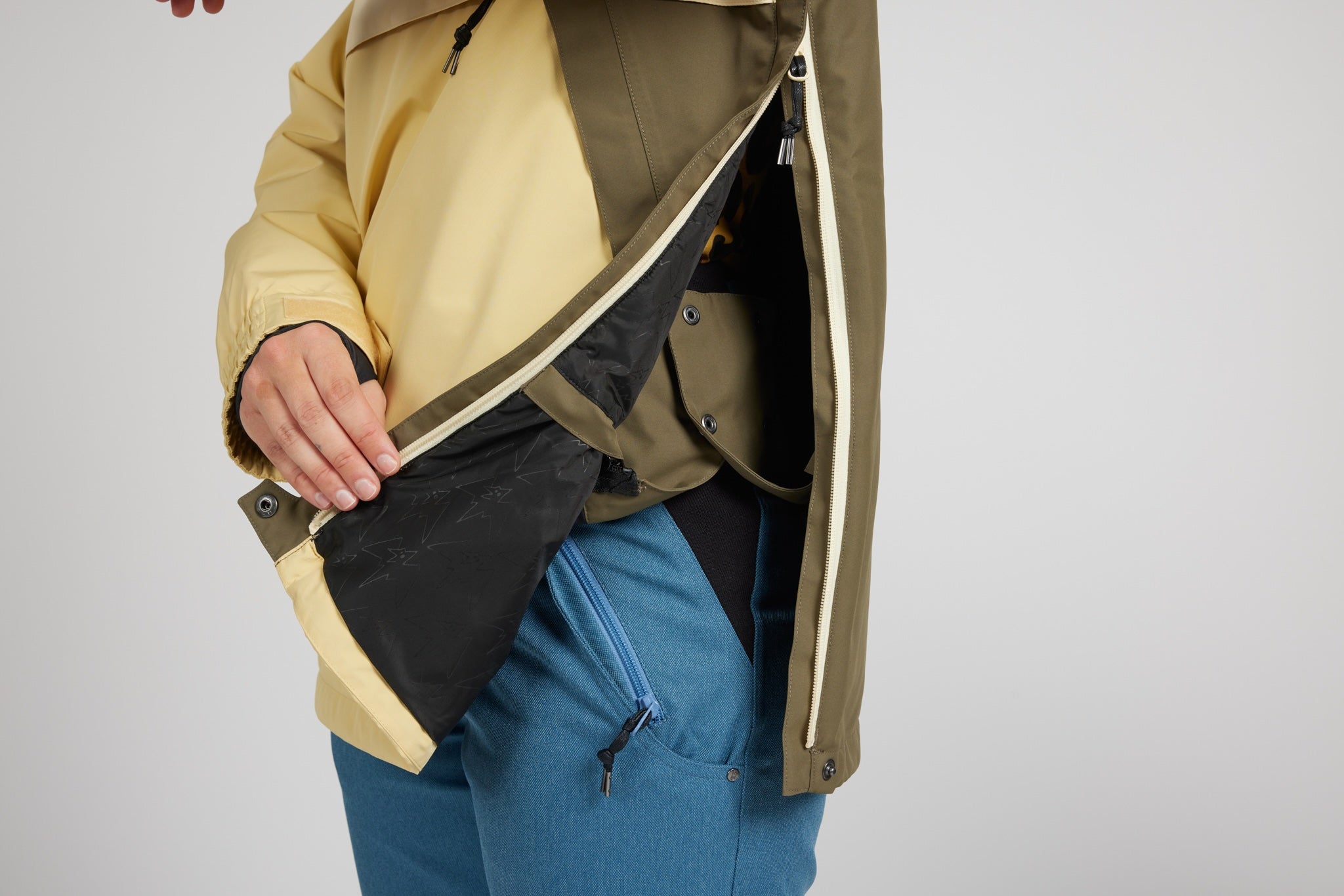 We've reimagined our crowd favorite Men's Trenchover jacket, with unique styling and an updated Women's fit! The cut has ample room to move, but is not overly baggy, and the design maintains Airblaster's trademark full side zip for easy entry and exit. A thin layer of 40g insulation provides warmth without bulk. We invite you to drink in the tasty trios of harmonic color vibration that we've created for your visual enjoyment. Please party responsibly.